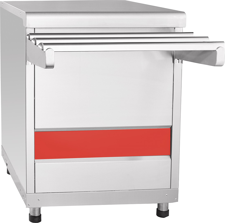 Модуль нейтральный МН-70КМ "АСТА" (630x705(1030)x870 мм, полн. нерж.) Модуль нейтральный предназначен для кратковременного хранения и раздачи потребителю хлебобулочных и кондитерских изделий, может быть предназначен для выкладки посуды или служить подставкой для кухонной техники. Внизу нейтральный шкаф для инвентаря. Направляющие для подносов и регулируемые по высоте ножки входят в комплект поставки.
