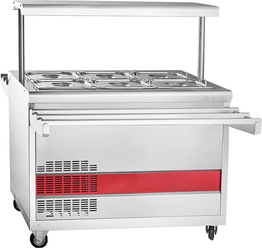 Прилавок холодильный ПВВ(Н)-70ПМ-НШ (откр., полка с подсветкой,1120 мм.) /вся нерж. Плавная регулировка температуры от 1 до 10 °С. Хладагент: R404A. Полка над прилавком имеет лампу подсветки, площадь выкладки 0,4 м2. Внизу открытый нейтральный шкаф для инвентаря. Комплектуется складывающимися направляющими для подносов с двух сторон и колесными опорами (поворотные с тормозом- 2, фиксированные- 2).