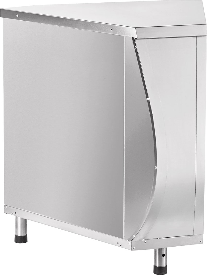 Модуль поворотный МП-45Т-01 "ПРЕМЬЕР" Модуль поворотный внутренний имеет угол поворота 45°, не имеет направляющих для подносов и предназначен для формирования изгиба в структуре линии раздачи. Модель оснащена регулируемыми по высоте ножками.
