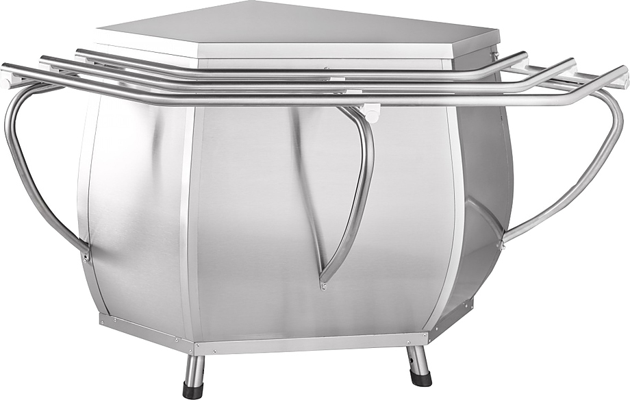 Модуль поворотный МП-90Т "ПРЕМЬЕР" Модуль поворотный внешний имеет угол поворота 90° и служит в качестве нейтрального стола, одновременно позволяя поворачивать технологические линии раздачи не разрывая линию направляющих для подносов. Модель оснащена регулируемыми по высоте ножками.