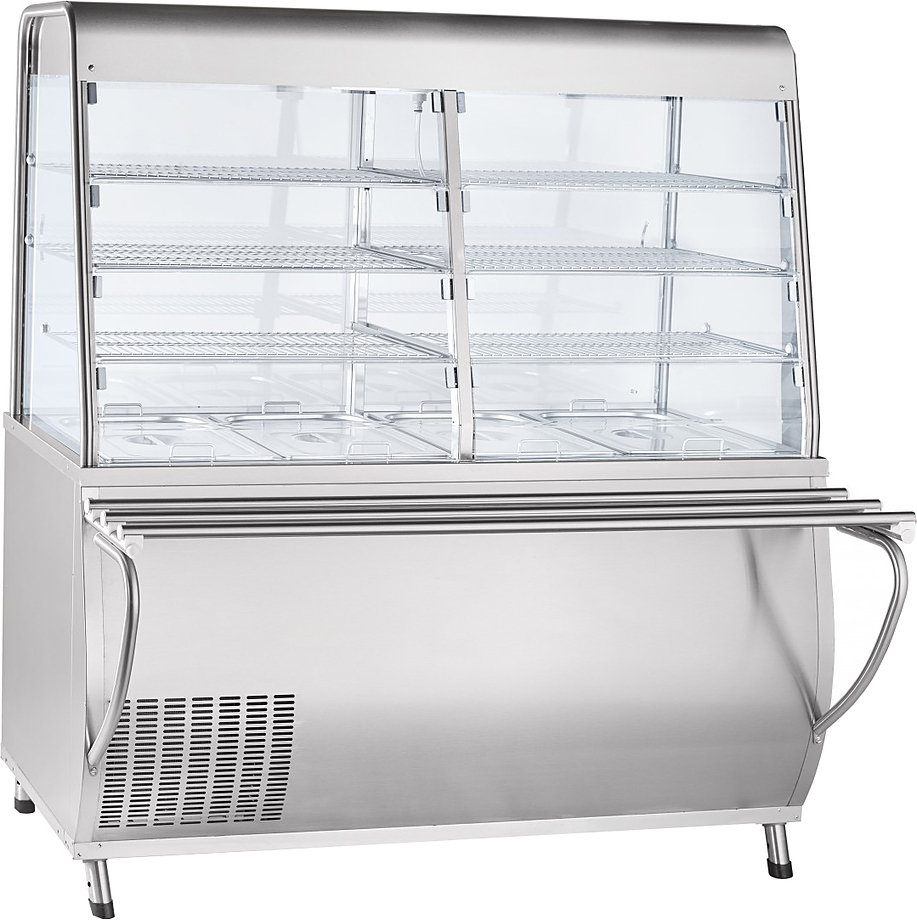 Прилавок-витрина холодильный ПВВ(Н)-70Т-С-01-НШ "ПРЕМЬЕР" полностью нерж. Плавная регулировка температуры 1...10°С. Хладагент: R404A. Внутренний объем закрытой витрины имеет принудительную циркуляцию охлажденного воздуха и 2 лампы подсветки. Демонстрационная площадь охлаждаемой ванны 0,68 м2, полкок: 1,82 м2. Внизу - нейтральный шкаф без дверок. Регулируемые по высоте ножки, полки, 4 гастроемкости GN 1/1-150 и направляющие для подносов входят в комплект поставки.