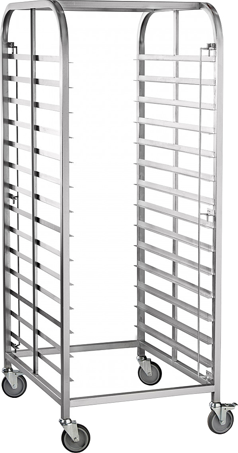 Тележка-шпилька для гастроемкостей ТШГ-14-2/1 Тележка изготовлена из нержавеющей стали. Имеет четыре поворотных колеса, два из которых оборудованы стопором.