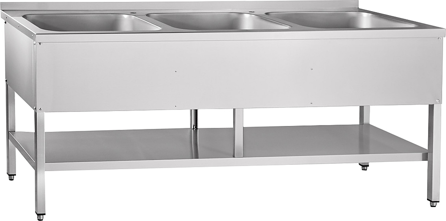 Ванна моечная 3-х секционная ВМП-7-3-6 РН вся нерж. разборная с полкой
