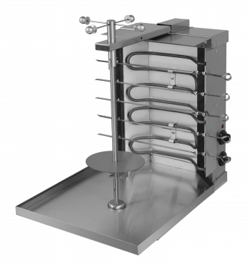 Шаверма газовая Ф1ШМГ (1 горелка, 425х685х520мм) 1 горелка с ситемой газ-контроль. Производительность до 15 кг/мяса. Газ-контроль. Поддон для мяса. Полностью из нержавеющей стали.