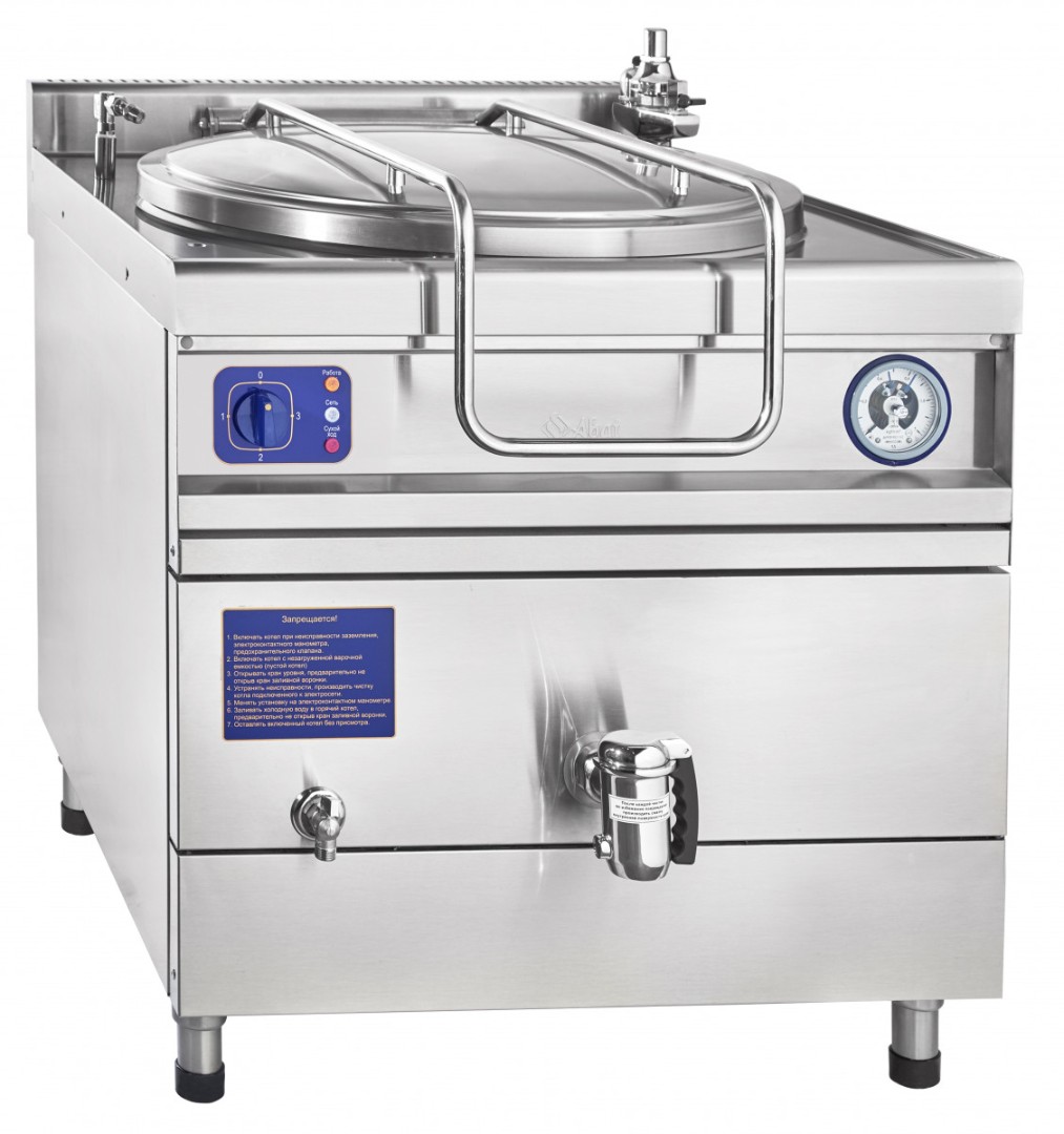 Котел пищеварочный электрический, сливной кран, паровая рубашка, цельнотянутый КПЭМ-160/9 Т(полностью нерж)