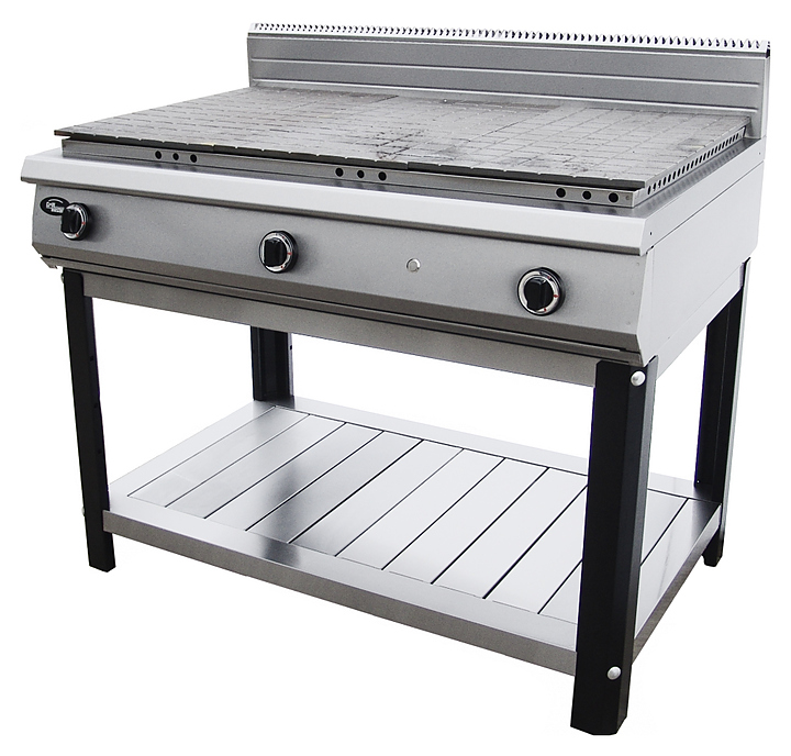 Плита газовая со сплошной поверхностью без жароч. шкафа(на подставке)Ф6ЖТЛСПГ(п)/13011п(800х1180х900 мм, 21,6 кВт, 220 В) Плита газовая на подставке имеет 3 чугунных горелки закрытого пламени, мощностью 21,6 кВт(3х7,2). Размеры сплошного настила плиты 1128х650мм. Температура рабочей поверхности 510°С. Расход газа природного - 3,6 м3/ч, сжиженного -2,0 кг/ч. Плита, подставка и полка выполнены из нержавеющей стали. Автоподжиг. Газконтроль. Разборная открытая подставка с 1 нейтральной полкой. Пожалуйста, обращайте внимание при заказе данных плит на вид газа, на котором Вы планируете дальнейшую эксплуатацию плит.