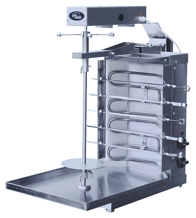 Шаурма электрическая Ф2ШмЭ (2 ТЭНа, с мотором) (425х690х770мм, 220В, 5 кВт, масса 12кг) 2 ТЭНа. 2 керамический переключателя. Электропривод основного шампура. Поддон для мяса. Загрузка до 30 кг. 5 горизонтальных шампуров для шашлыка. Полностью из нержавеющей стали.