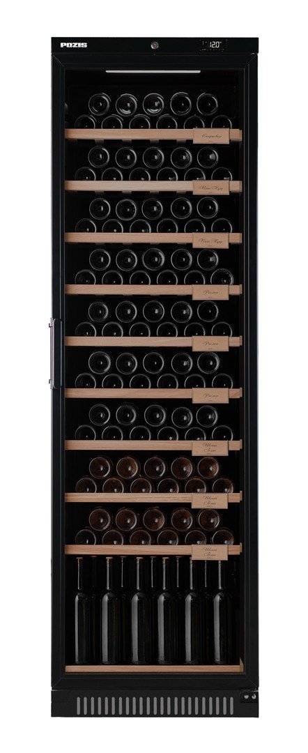 Предназначен для демонстрации и хранения при заданной температуре охлажденных вин. Особенности и дополнительные элементы: полки 9 штук и полка-подставка (дерево), вместимость до 120 бутылок вина, микропроцессорный регулятор температуры со сверхчувствительным датчиком, возможность регулирования температуры на внешней панели управления, световая индикация режима работы, электронный блок управления, дверь-стеклопакет с тонированным покрытием против проникновения УФ-лучей с замком, автоматическое поддержание температуры в камере.