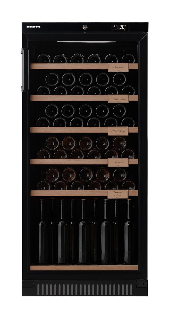 Предназначен для демонстрации и хранения при заданной температуре охлажденных вин. Особенности и дополнительные элементы: полки 5 штук и одна подставка (дерево), вместимость до 69 бутылок вина, микропроцессорный регулятор температуры со сверхчувствительным датчиком, возможность регулирования температуры на внешней панели управления, световая индикация режима работы, электронный блок управления, дверь-стеклопакет с тонированным покрытием против проникновения УФ-лучей с замком, автоматическое поддержание температуры в камере.