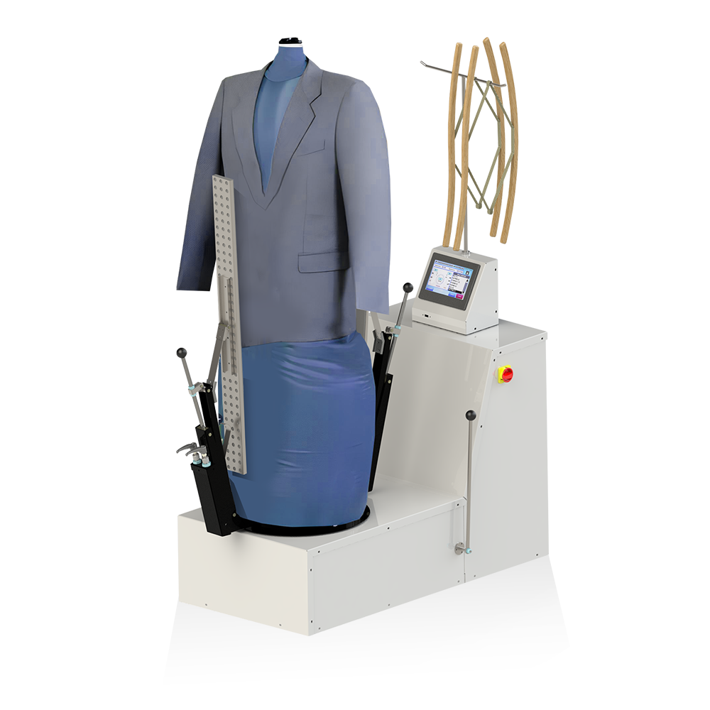 Предназначен для финишной отделки верхней одежды (рубашки, пиджаки, жакеты, куртки, халаты, пальто и т.п.) путём пропаривания горячим влажным воздухом с паром в расправленном виде. Регулируемая форма куклы придаёт манекену нужную форму, а регулируемые прижимы обеспечивают плотное прилегание одежды для идеального глажения. Расширители и специальные зажимы для проглаживания рукавов в комплекте.