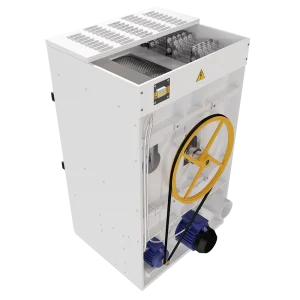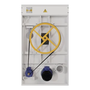 Сушильная машина ВС-15 оснащена защитными блокировками, автоматической диагностикой ошибок, аварийной сигнализацией. Имеет большой ворсовый фильтр для улавливания очесов и встроенный вентилятор. Машина  подключается к общей системе вытяжной вентиляции прачечной